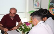 O Frei Fernando Ventura, padrinho e companheiro deste projeto, faz a revisão final dos textos.