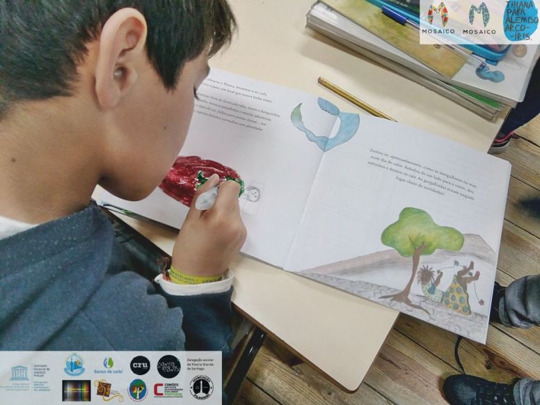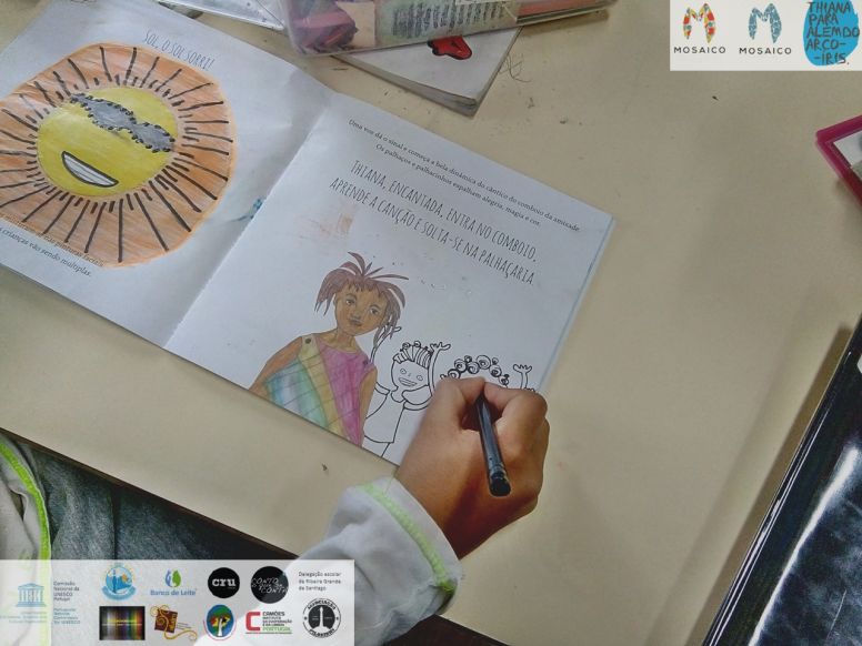 Thiana para além do arco-íris co-criado por Rita Faria de 5 anos da Escola de S. Faustino e com a cooperação da sua mãe Vitaliana Brandão. Exploração em contexto de sala de aula e literacia familiar. Uma perfeita obra de arte.
