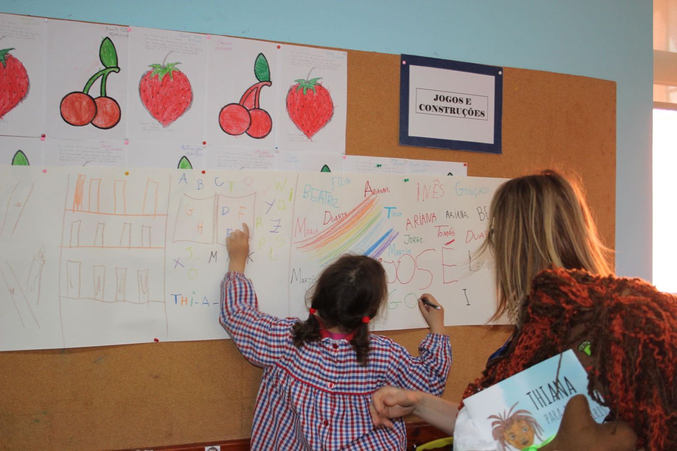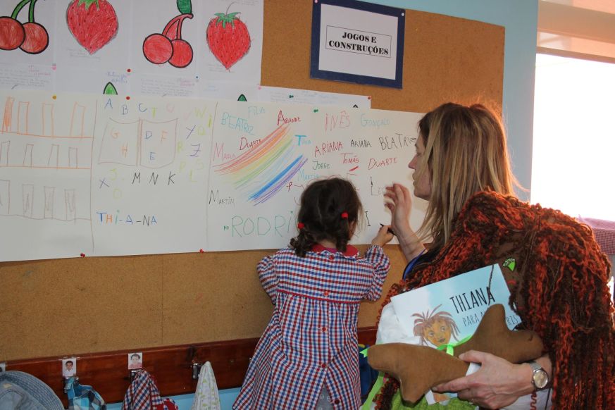 O “Livro Brincalhão” foi criado para ajudar as crianças do Pré-Escolar a escreverem os seus nomes. Um dos exemplos de atividades para estimular a consciência fonológica e escrita inspirada na aprendizagem da Thiana quando descobre as letras do seu nome.