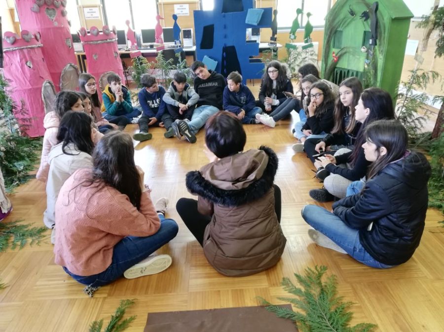 A sessão de contos destinou-se a alunos de pré-escolar, primeiro ciclo, 7º ano e alunos do Centro de Apoio à Educação (antiga Unidade de Educação Especial). Usufruíram cerca de 600 alunos.
