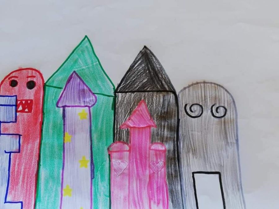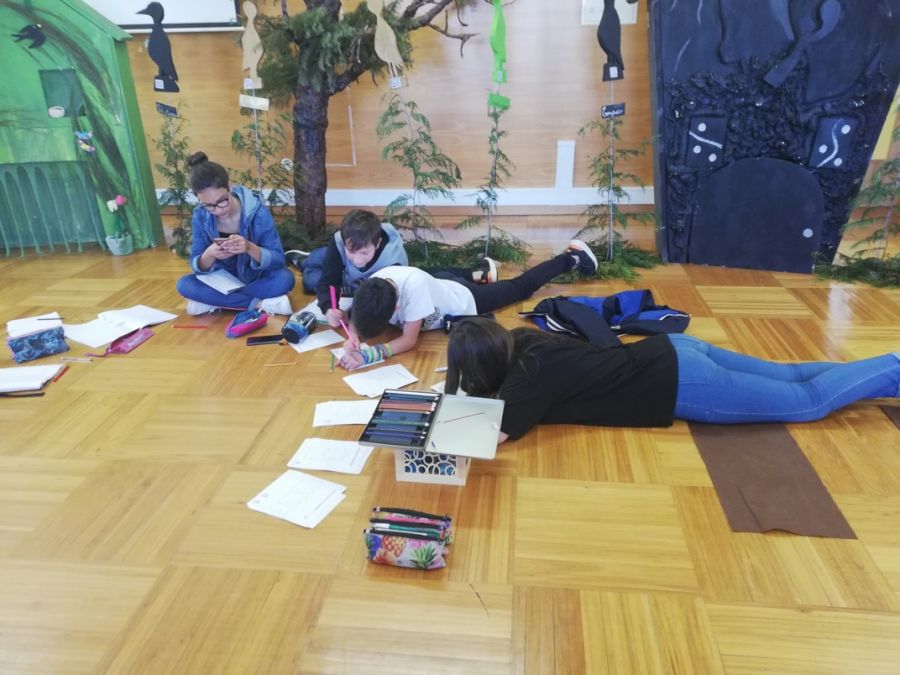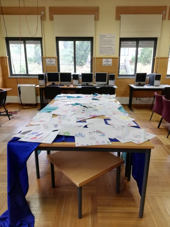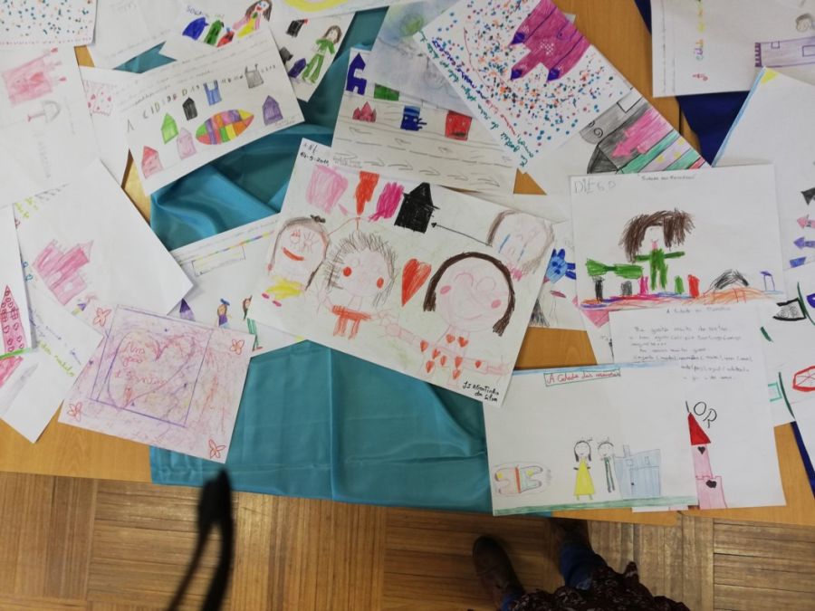 Os alunos do pré-escolar e primeiro ciclo criaram uma exposição de desenhos sobre os momentos vividos na visita à “Cidade das Memórias” e à sessão de contos interativa.