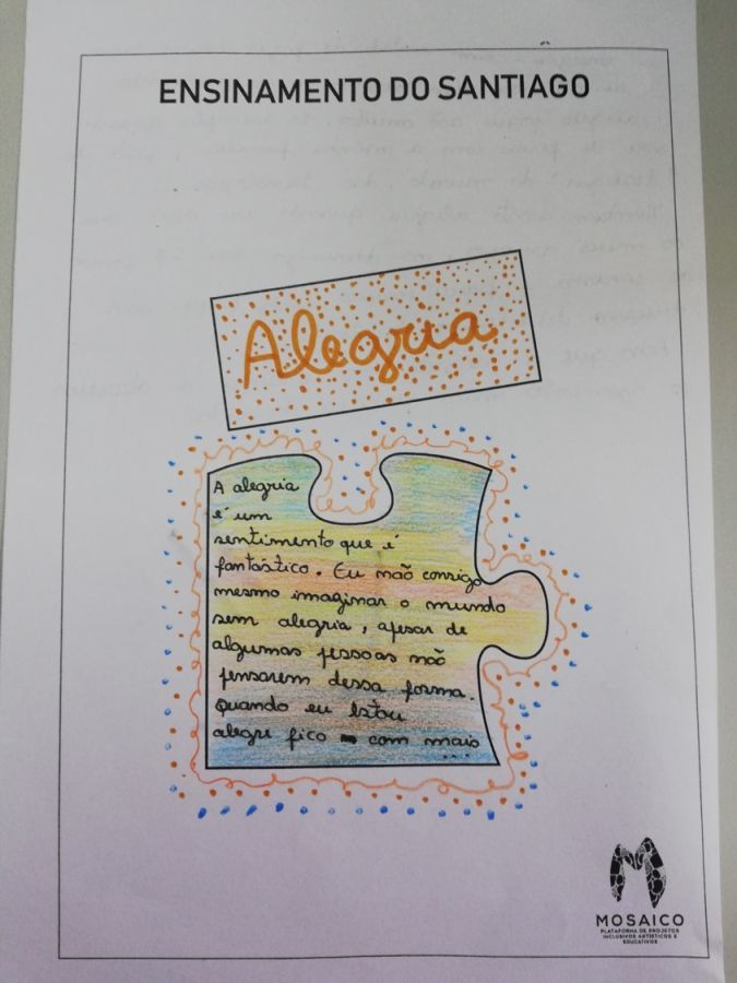 Os outros materiais produzidos pelos alunos foram em contexto de sala de aula e não os quiseram partilhar por uma questão de preservação da sua intimidade. O mais impactante foi o processo, foi conseguirem identificar as emoções a aprenderem (ainda que de forma superficial) como gerir as emoções e poder usar técnicas de transformação/transmutação.