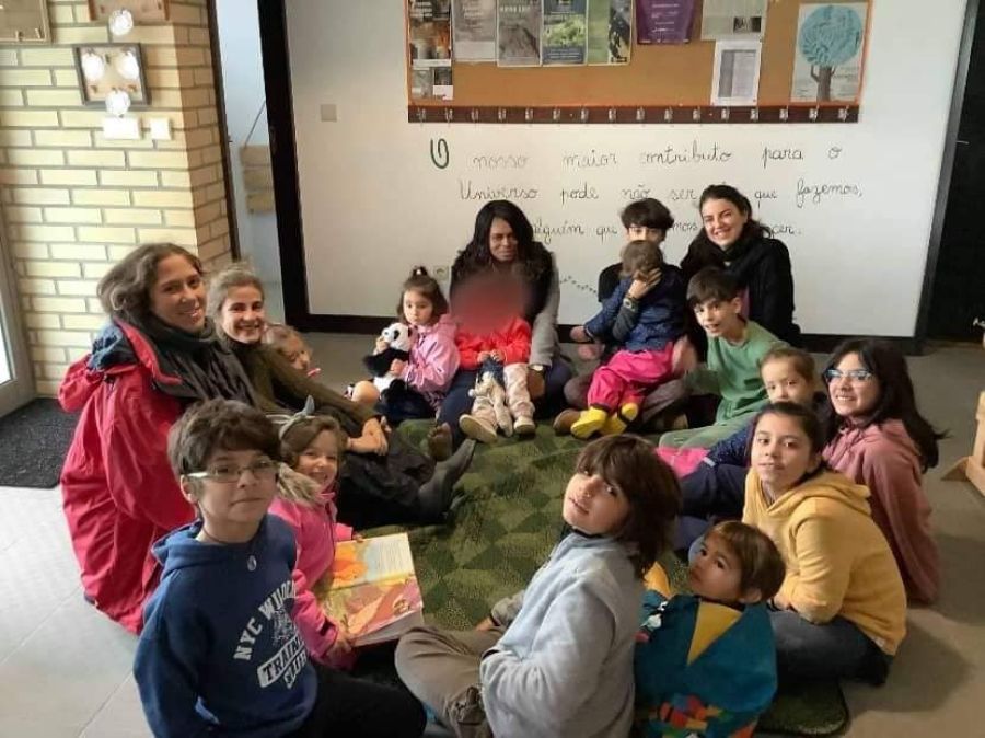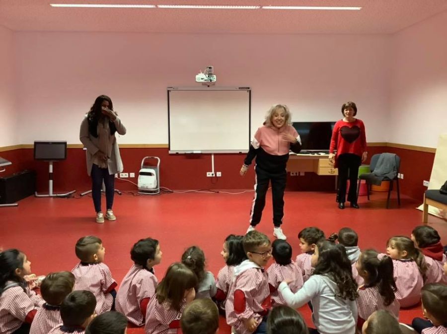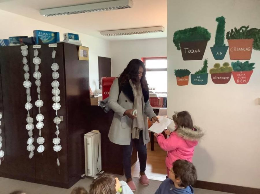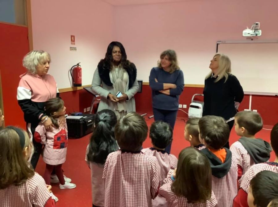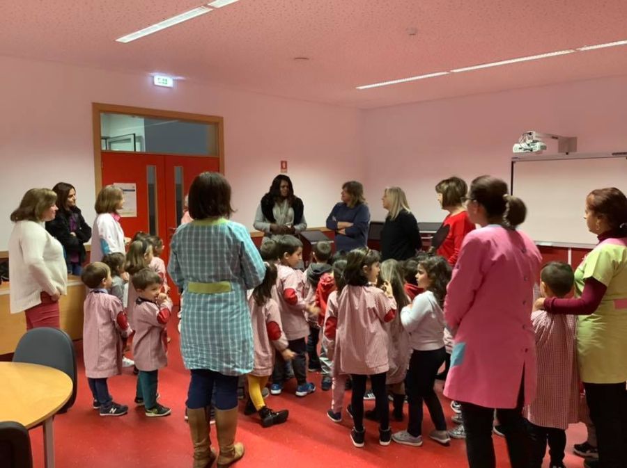 A recepção foi iniciada com a sessão de contos presenteada pelas educadoras. O conto escolhido foi o “Nho Maio” (conto tradicional de Cabo Verde, recontado por Ana Caridade e ilustrado por Cristina Malheiro Mouta). A alegria das crianças foi contagiante. Cabo Verde foi vivenciado por todas as crianças do primeiro ciclo.