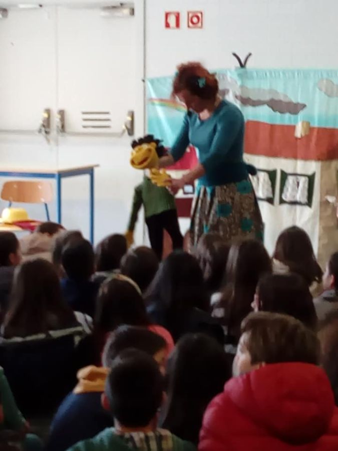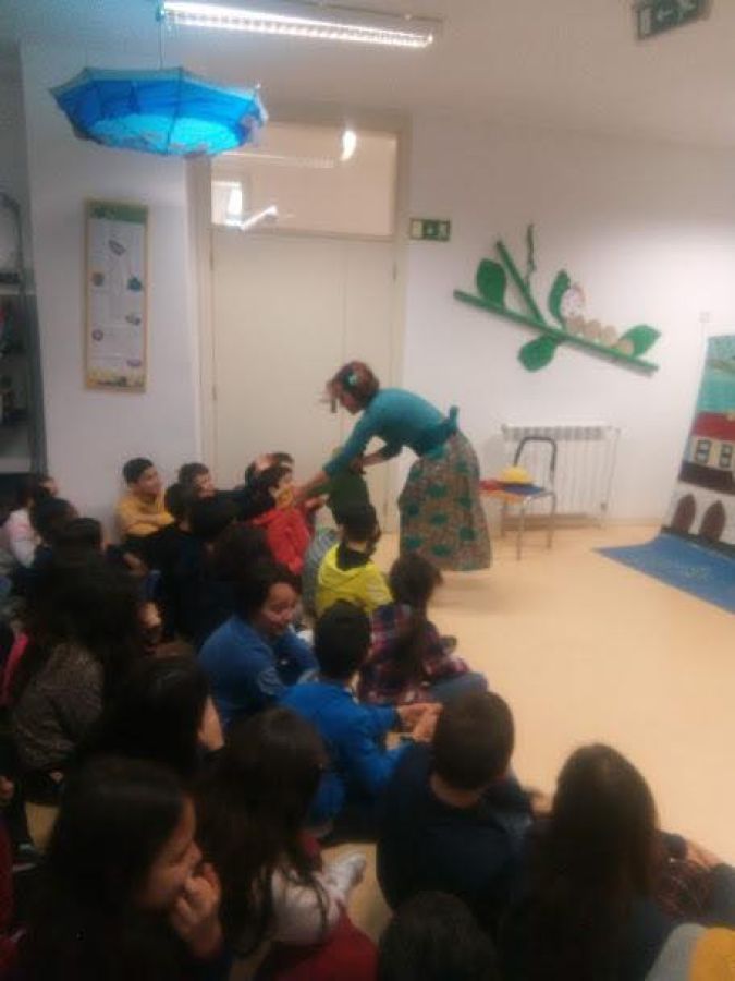 No dia 14 de janeiro, a contadora de histórias Inácia Cruz, no âmbito do Projeto Com(P)artilha, foi à nossa Biblioteca da EB de Oliveira do Castelo, apresentar uma animação e dramatização do conto “Indra e Yohanna a poética do encontro”, promovendo a leitura como forma de expressão, criando momentos lúdicos e expressivos para as crianças e professores.