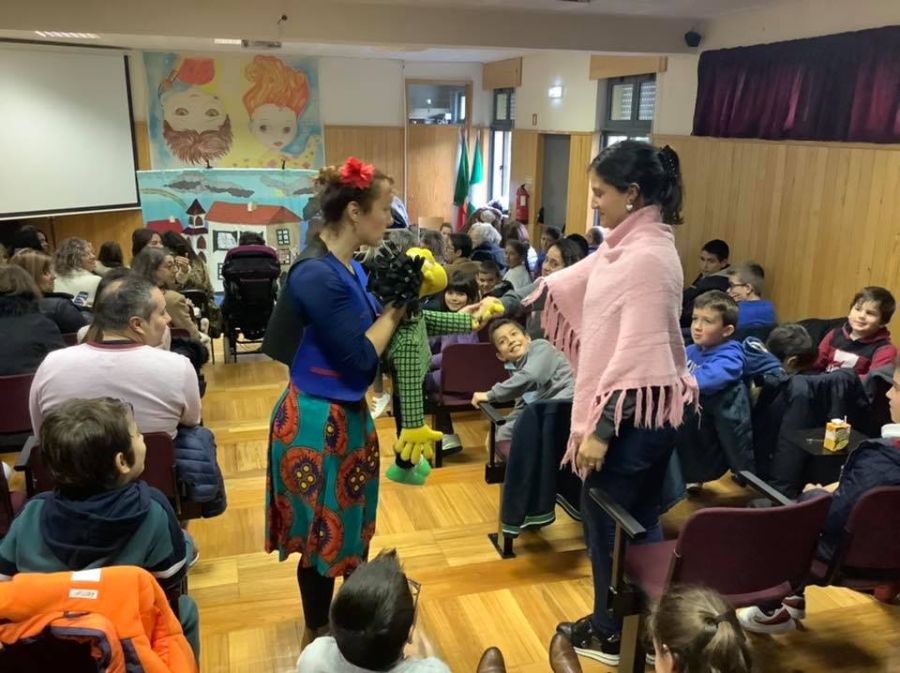Nos dias 29 e 30 de janeiro, no âmbito do Projeto Com(P)artilha, a contadora de histórias Inácia Cruz apresentou uma animação e dramatização do conto “Indra e Yohanna, a poética do encontro”. No dia 29, a sessão para os alunos do Pré-Escolar e 1º ciclo das escolas Agostinho da Silva, Calvos e Pinheiro e decorreu no Auditório da Escola Sede. No dia 30, duas 2 sessões: uma na Escola Básica de S. Faustino e outra na Escola Básica de Tabuadelo. Nestas sessões, foram oferecidos os livros aos alunos do 1º ciclo, oferta do Município de Guimarães. Sendo um livro em construção, será trabalhado com as famílias, em contexto de sala de aula e com a Biblioteca Escolar.