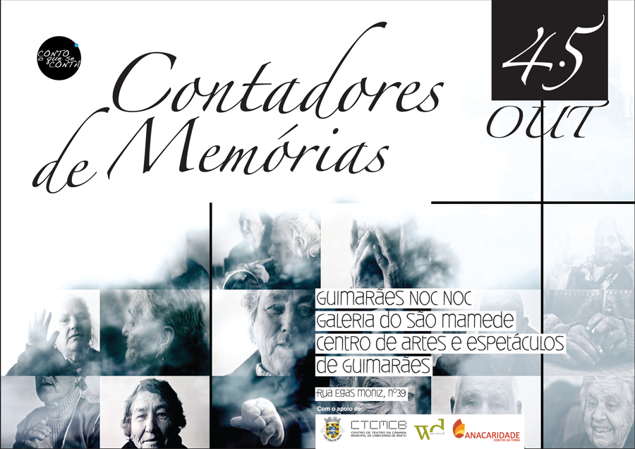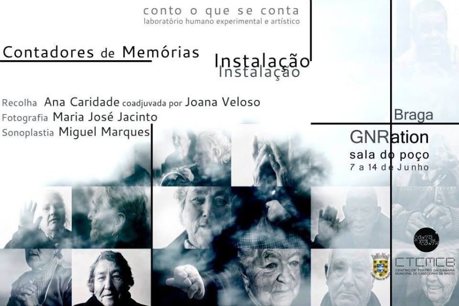 Contadores de Memorias surge de um conjunto de residências artísticas em que Ana Caridade, Joana Veloso escutam histórias de vida, contos tradicionais, músicas de trabalho e lazer, mezinhas e medicinas tradicionais de vários anciãos. A sabedoria popular, uma das paixões destas duas mulheres, serve de mote para convidarem Maria José Jacinto para fotografar esses momentos de partilha. Surge uma exposição fotográfica homenageando estas Mulheres e Homens que são os guardiões da identidade do povo. O Miguel Marques surge como convidado para dar voz às pérolas partilhadas criando a sonoplastia da Instalação.